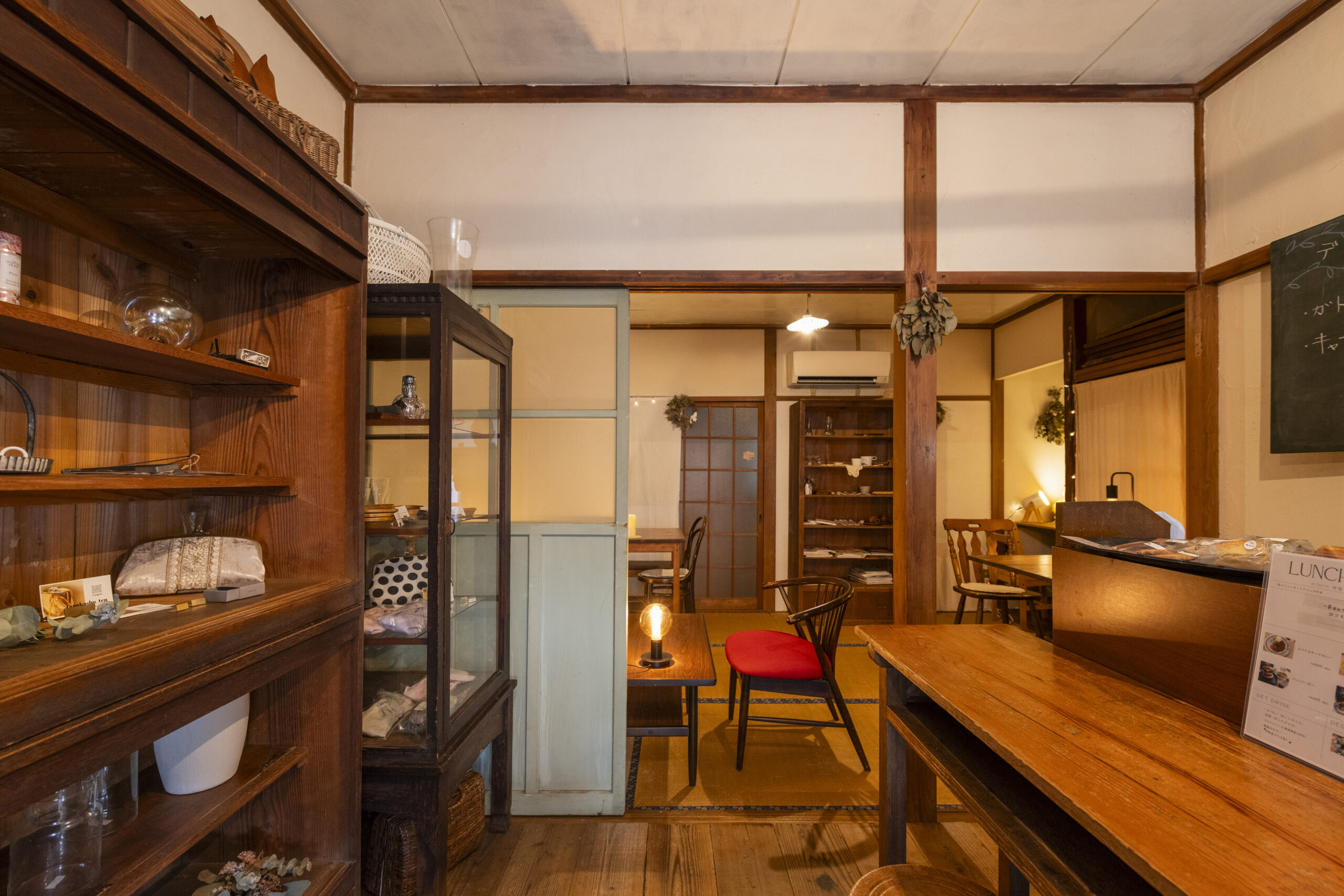 豊岡漁港近くに佇むかわいいカフェ。店内には焼き菓子や県内外作家の作品や雑貨が並び、地域食材をなるべく使用したランチやスイーツも味わえる。ハンバーガー、タコライス、キーマカレーなどランチ1430円も好評。つい時間を忘れてしまうほどくつろげる場所だ。