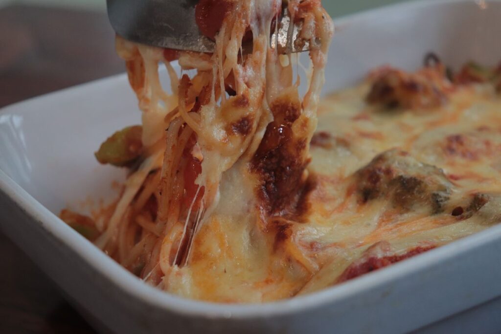 【簡単!お手軽!楽わざレシピ94】とろ~り濃厚チーズの「クリスマスガーリックトマトパスタグラタン」