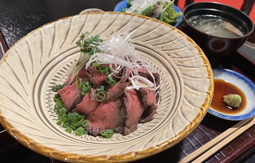 『珈琲談義所嶋屋』が肉カフェとしてリニューアル。オーナーが手塩にかけて育てた黒毛和牛の赤身肉を使ったローストビーフ丼やビーフシチューをはじめ、ステーキ丼などが味わえる。