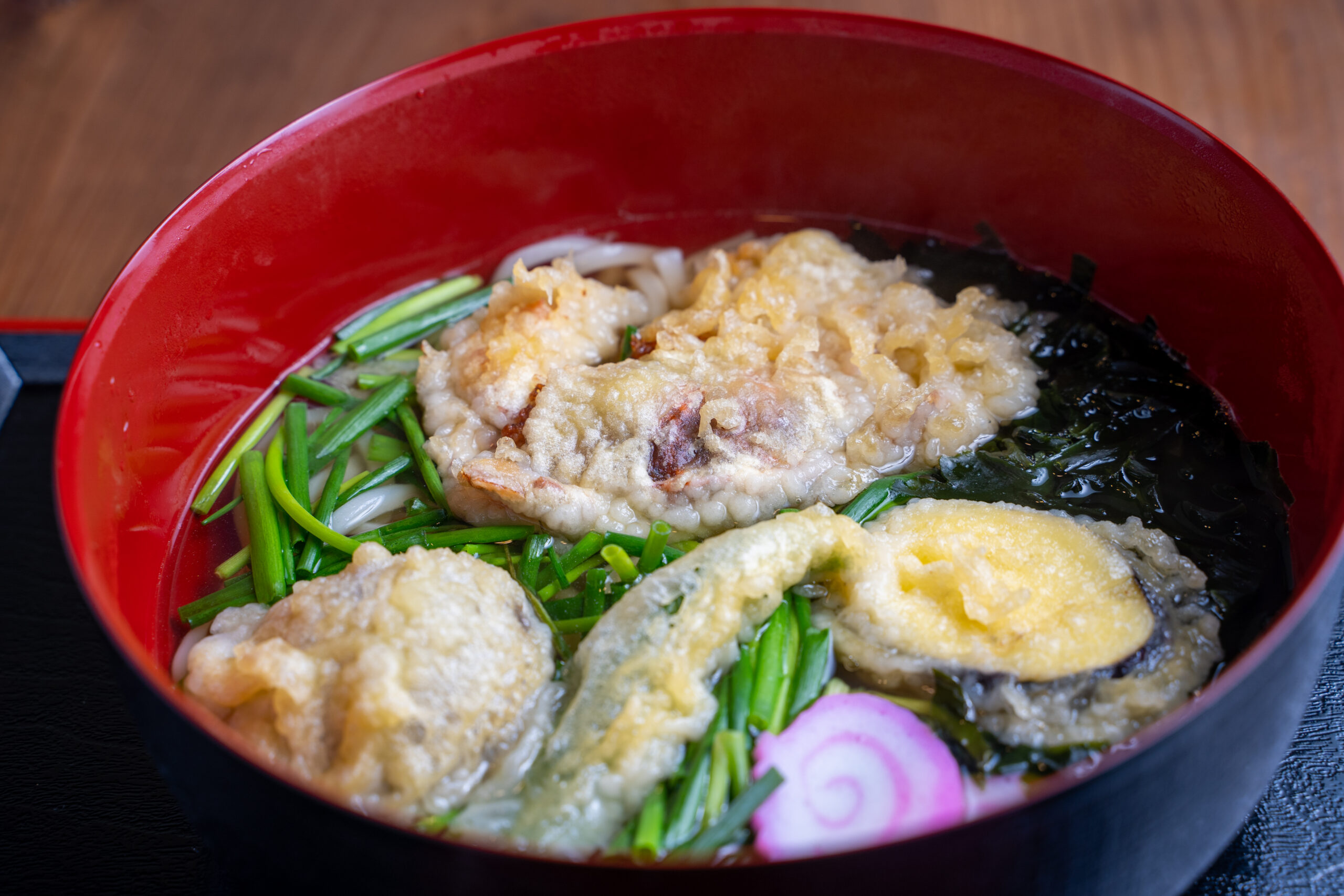 ソフトシェルクラブの天ぷらがまるごと入った「ガニ湯うどん」1200円