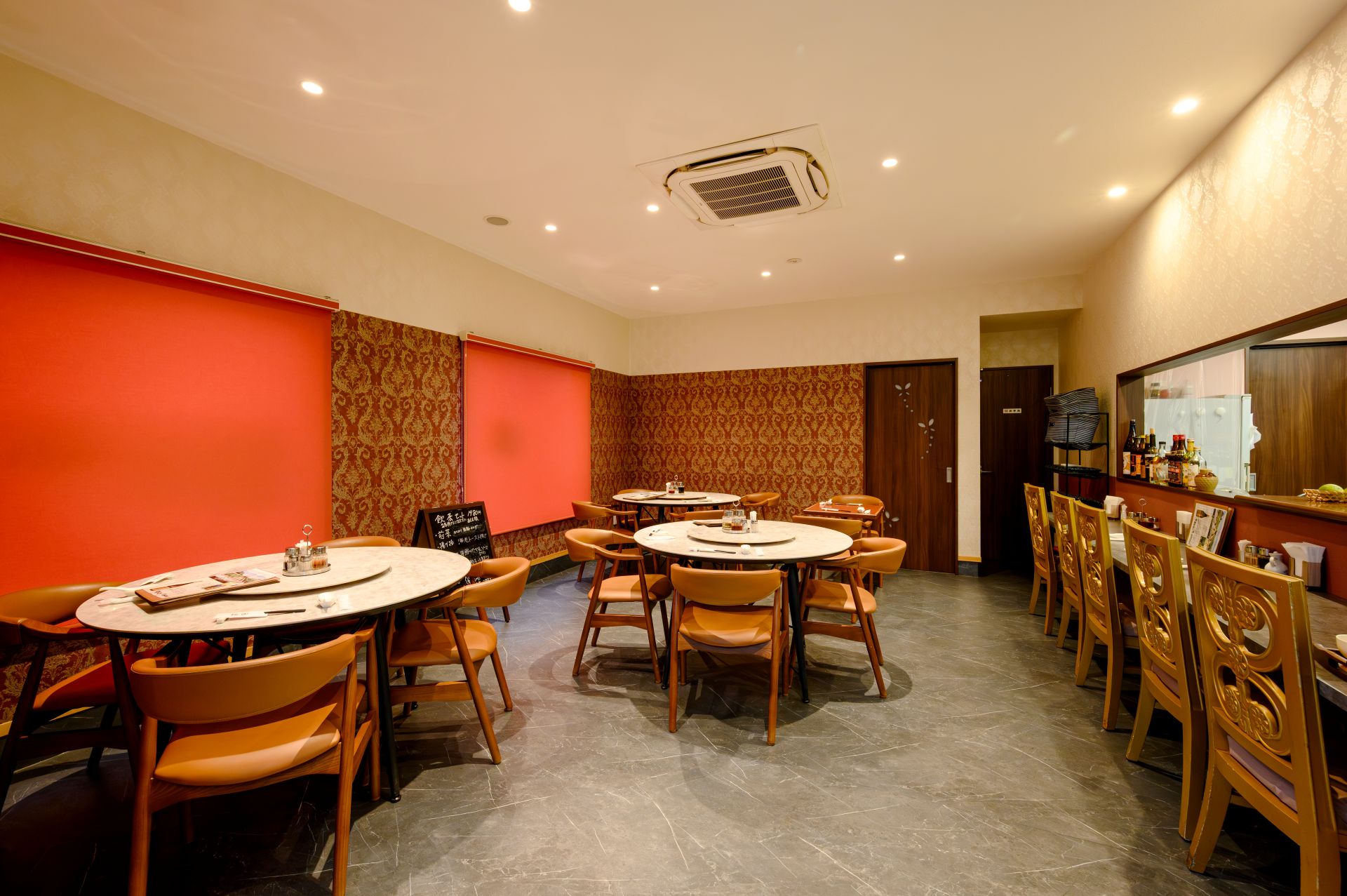ターンテーブル付き円卓やカウンター席、奥には8名まで対応可能な個室も完備