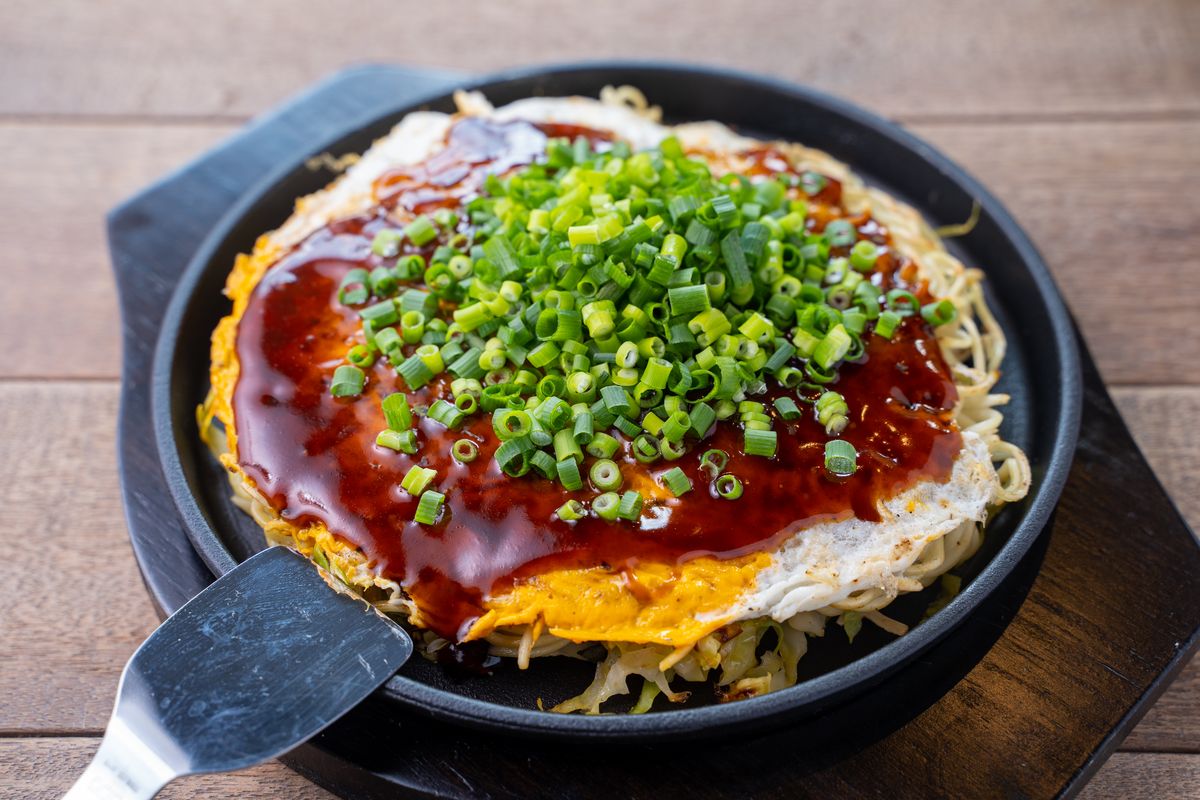 広島・『磯野製麺』の生めんやオタフクソース、宇佐の味一ねぎなど、素材にこだわった広島焼きが味わえる鉄板焼きのお店。夜はお酒と一緒に楽しんで。