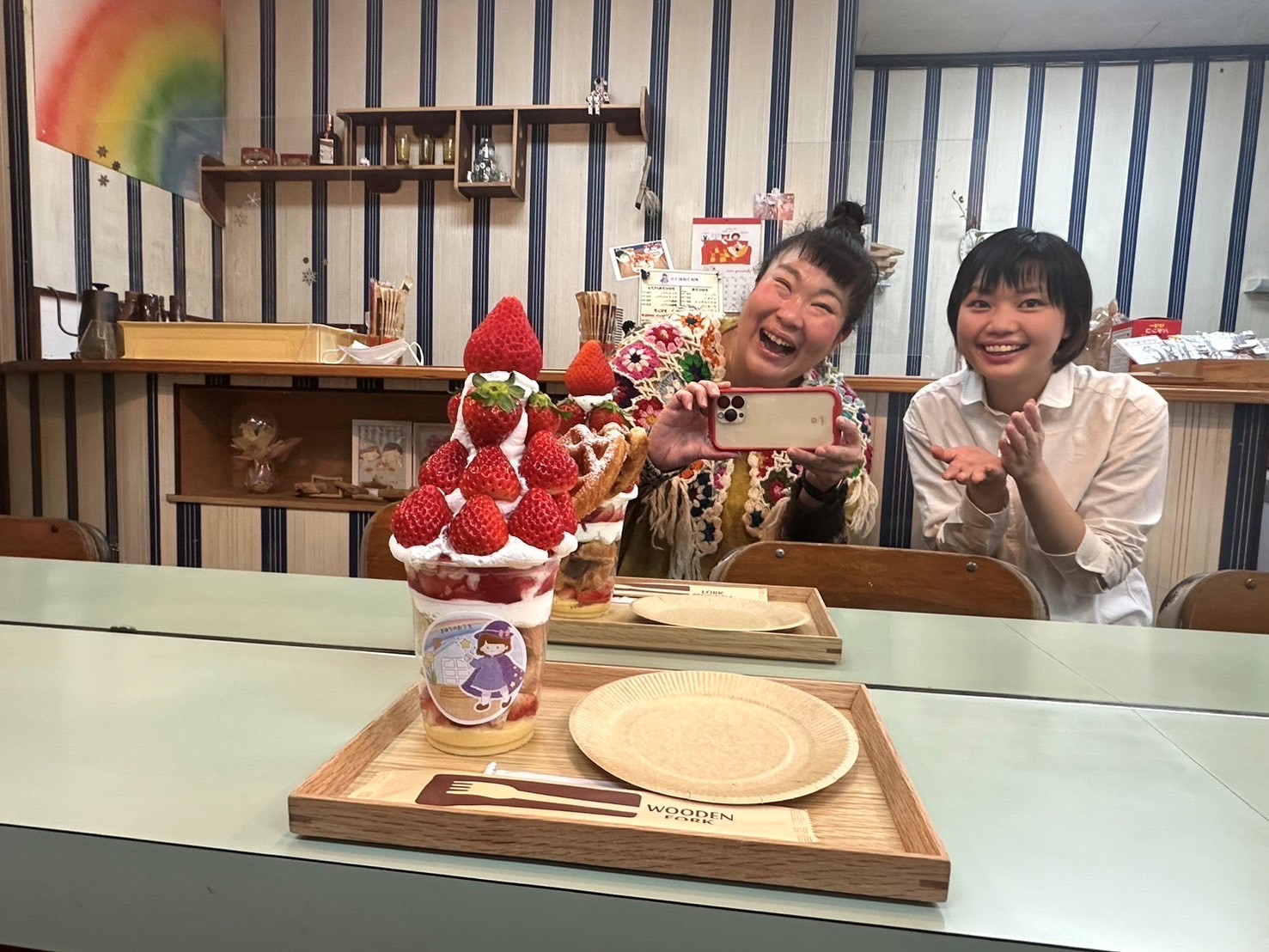 三浦里芳さんが生み出すメニューは若いセンスが溢れています!こちらの「いちごのおっこちパフェ」も大人気!!