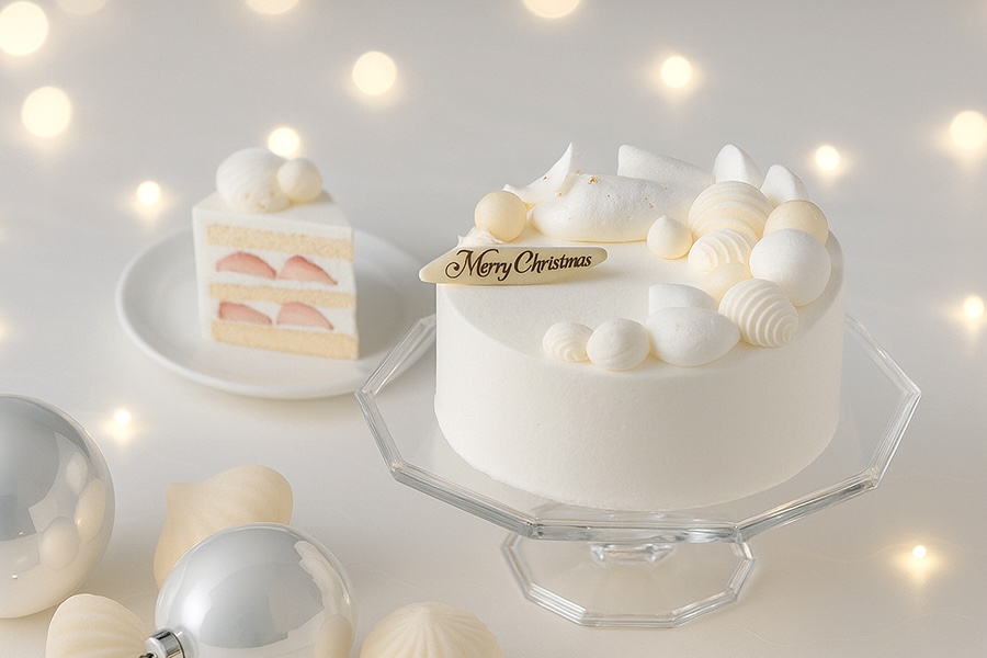 今年のケーキは、雪が積もったような真っ白なショートケーキ、「ノエル・ブラン」。