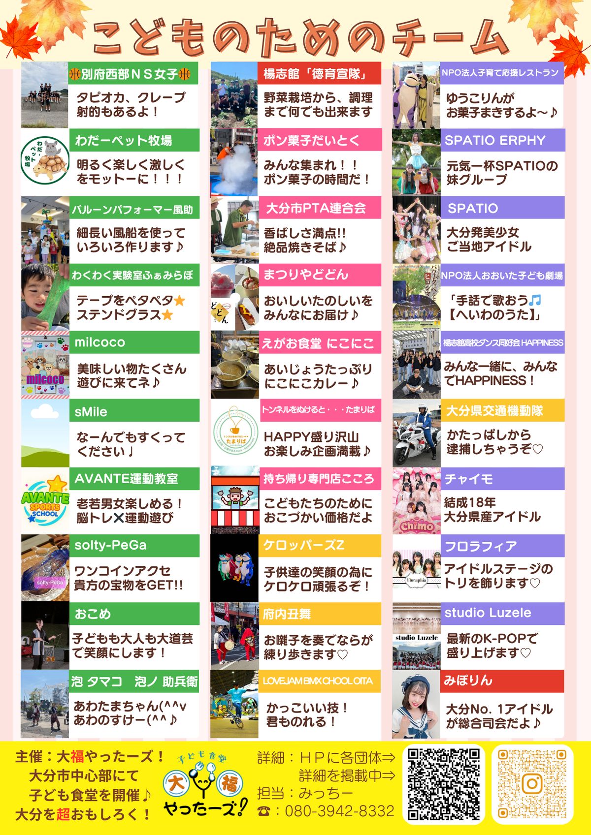 問い合わせ先:080-3942-8332(大福やったーズ!・みっちー)