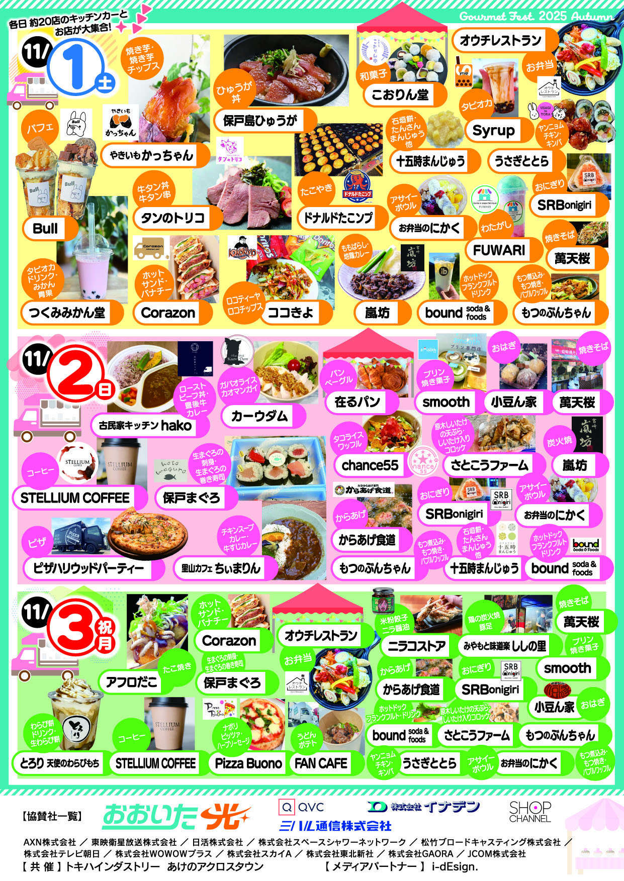 大分県のグルメ大集合!秋のぐるフェスがあけのアクロスタウンで開催!今回ぐるフェス初出店のお店が多く揃った他、大分市初出店の話題のキッチンカー、サンリオカフェワゴンが登場!その他、アトラクションも用意され、過去最大級のぐるフェスとなっています!