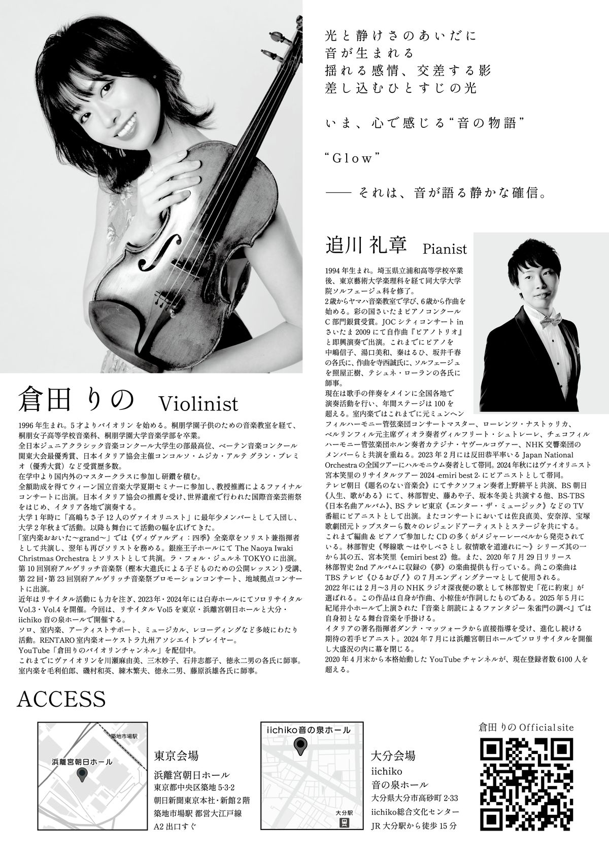 6. 倉田りの ヴァイオリンリサイタルVol.5 Glow-静けさに宿る光-:12/14(日)/大分市