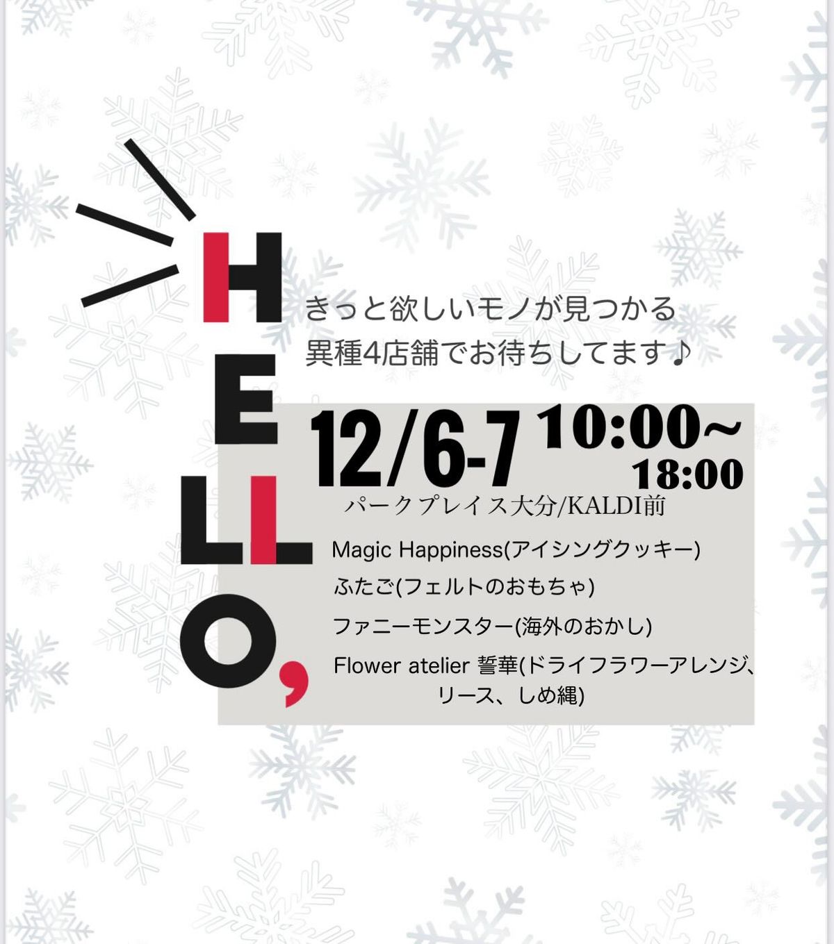 3.ハンドメイドマルシェ Hello,mini:12/6(土)・7(日)/大分市