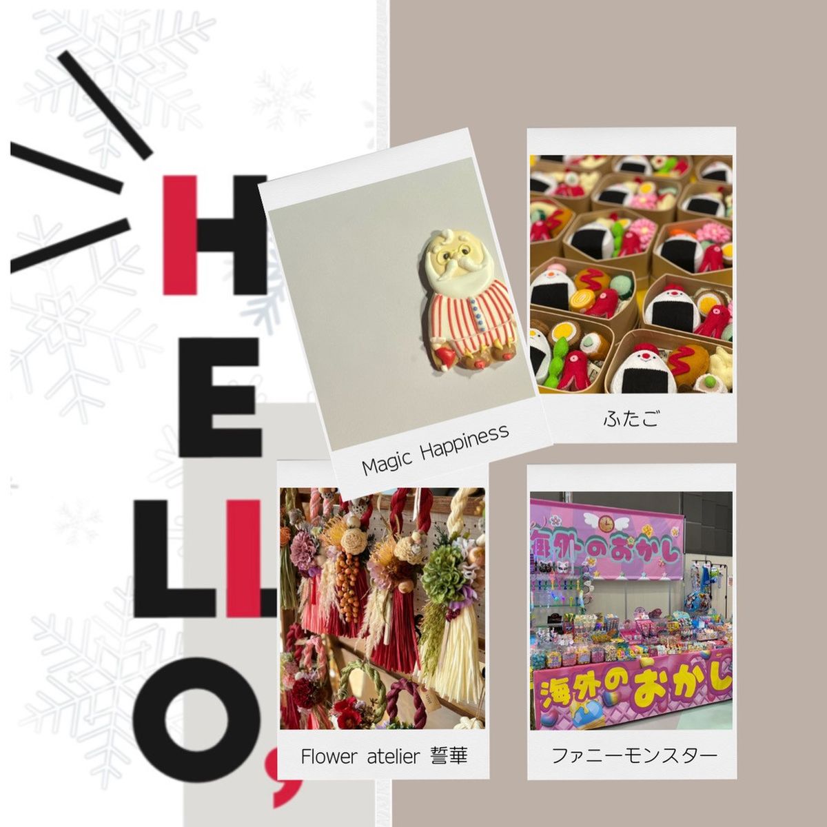 アイシングクッキー、フェルトのおもちゃ、海外のお菓子、ドライフラワーアレンジの4ショップが、とっておきの商品を用意して集結します。1年よく頑張った自分へのご褒美や、クリスマスのギフト、新年への準備などに。心ときめくアイテムハンドメイドアイテムとの出合いを探してみてくださいね。