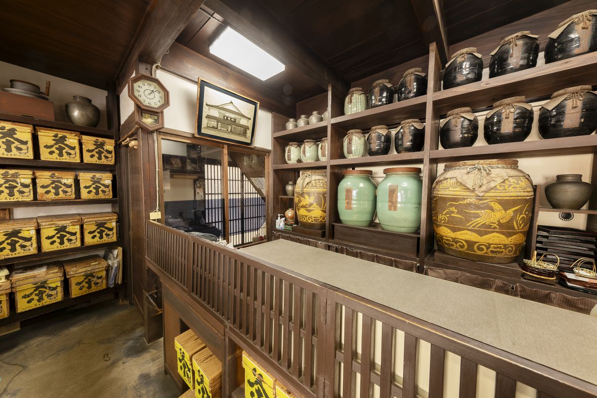 店内には、江戸時代から使われてきた茶つぼや抹茶をひく石臼も並び、まるでお茶の博物館のよう