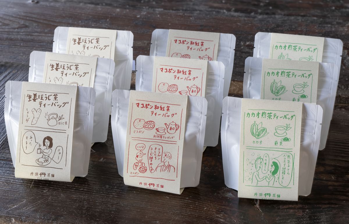 オリジナルのお茶も販売。地元産のかんきつ「マコポン」と和紅茶を合わせたものなど、ティーバッグのシリーズ540円は、パッケージもかわいいですね