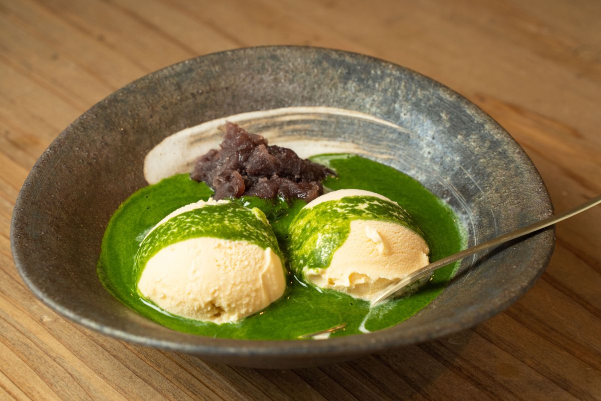 「濃厚抹茶アフォガード」450円。バニラアイスに濃い目に点てた抹茶をかけて提供