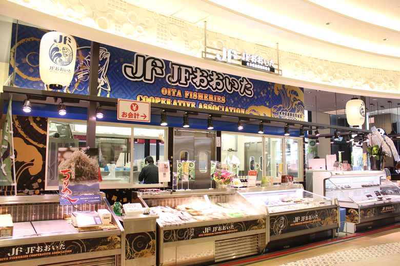 漁協直売店として新鮮な県産魚を豊富に取り揃え。鮮魚はもちろん、フライや煮つけなどの総菜や海鮮丼、寿司パック、魚肉ハンバーガーまで、その場で調理・加工した商品が並ぶ。