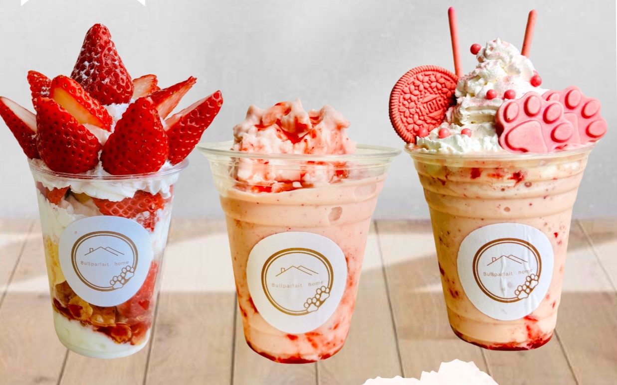 キッチンカーでイベント出店をしていた『Bullparfait 』が、実店舗をオープン。季節のフルーツなどを生かしたパフェなどがあり、スムージーやフロートなども。テイクアウト限定。