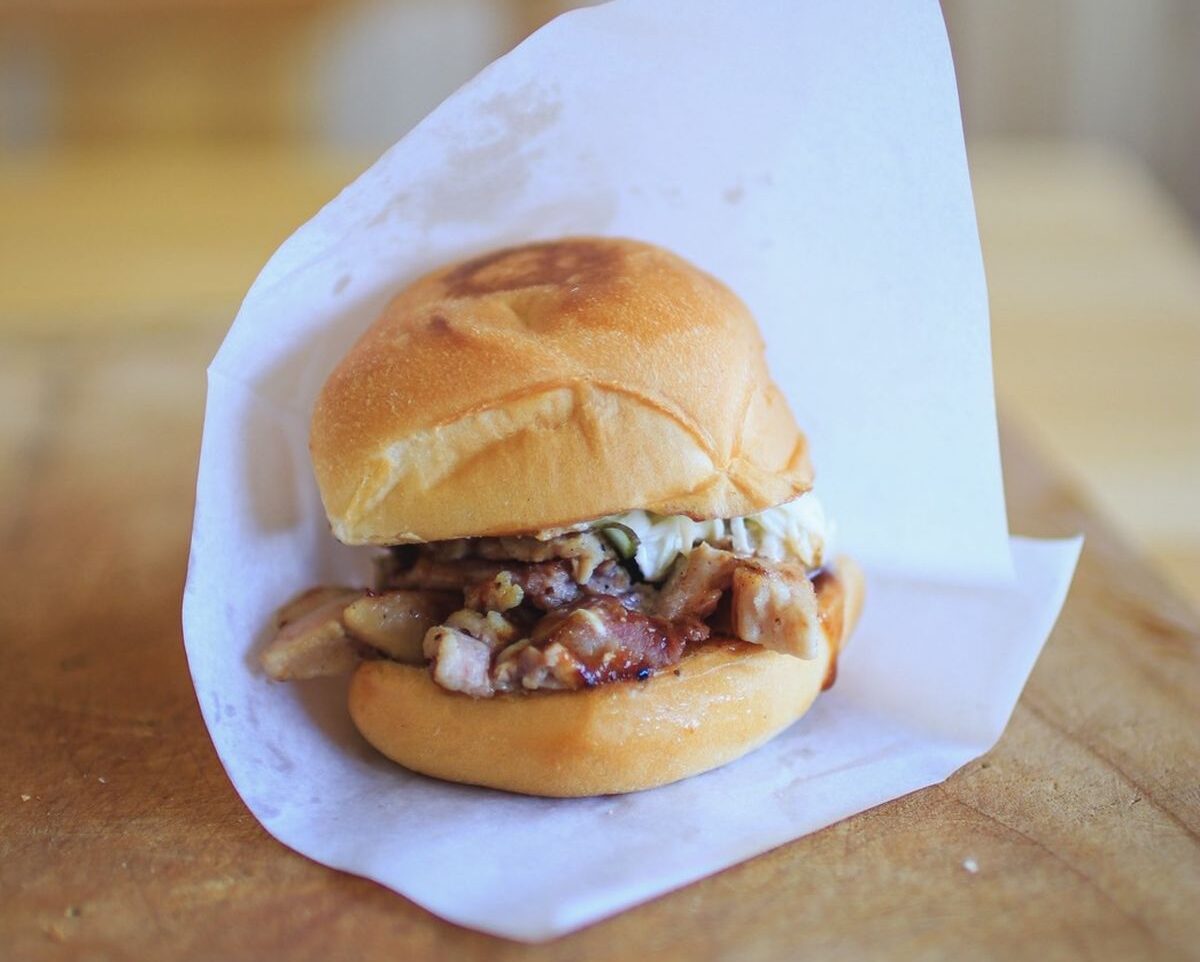 由布市の『かぐらちゃや』入口前にオープン。プルドポークを使った「神楽バーガー」、毎日内容が変わる「日替わりバーガー(ドリンク付き)」を販売。食べやすいサイズ感で、旅の途中の休憩にもおすすめ。