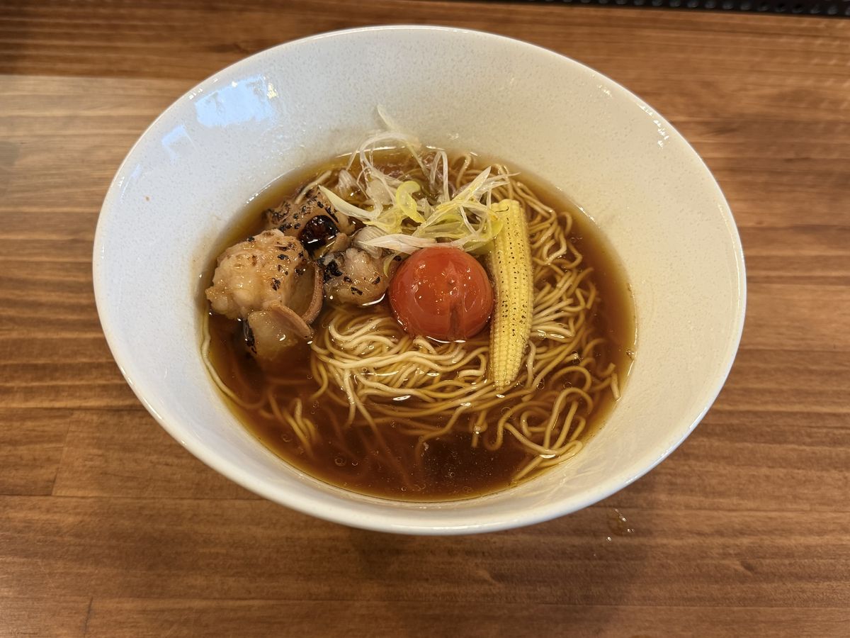 鶏の旨みを丁寧に重ねた一杯が味わえるラーメン店。トッピングは国産和牛のホソを使用した「もつ」かスープとよく絡む柔らかい「チャーシュー」を選べる。今後は鶏白湯やつけ麺も順次登場予定。