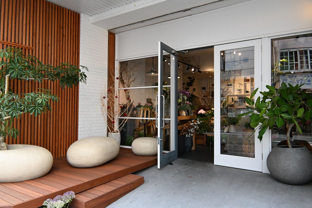 小さな花屋とデーツドリンクの店。万博でも人気を集めた「デーツシェイク」は、デーツ本来の甘さを生かしたやさしい味。ミルクやココア、チャイで作るホットもぜひ。