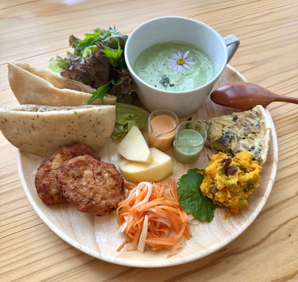旧山浦小学校に喫茶室がオープン。山浦のお米を使い、野草や野菜などの自然豊かな素材を生かした「玄米パンランチ」が味わえます。よもぎ蒸しやイベントも開催されていますよ。