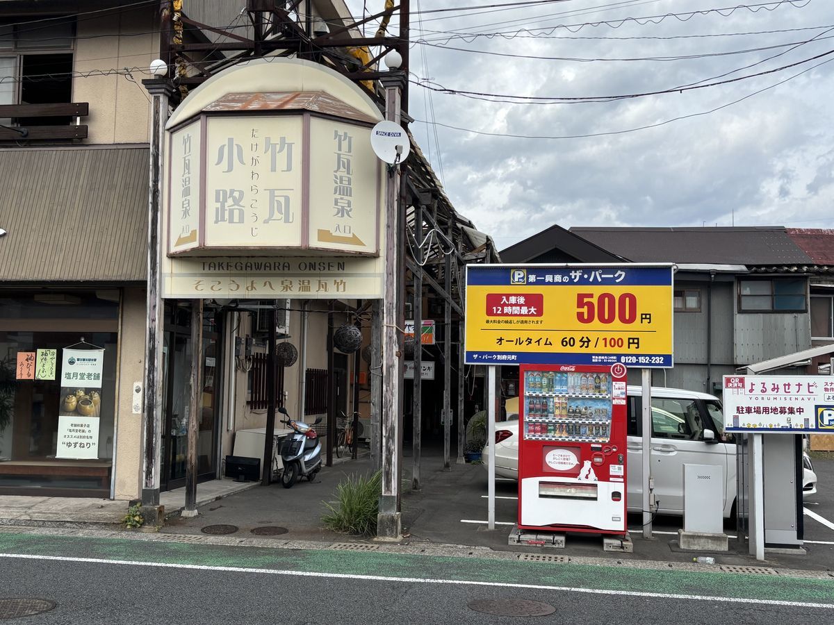 竹瓦小路を抜け、竹瓦温泉の前なのでわかりやすい