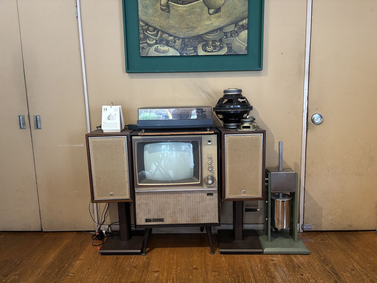 待っている間にいい匂いが漂ってきた。目の前には年代物のテレビのディスプレイ。