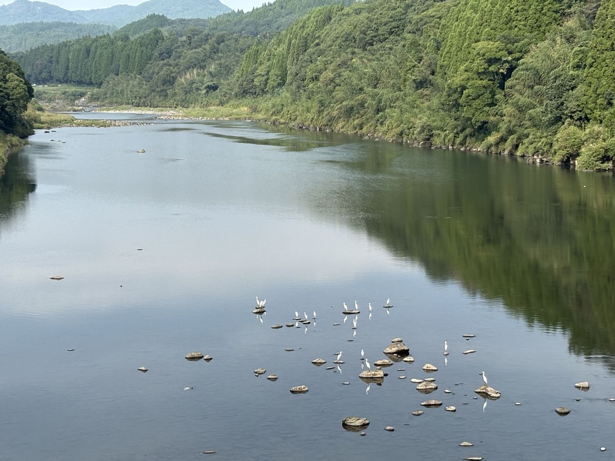 大阪から数年前に豊後大野へ移住されたという池田さん。聞けば豊後大野市観光協会に勤めているという。「江内戸の景」が好きなことを伝えると、「春分の日と秋分の日にここから見える夕陽が綺麗なんです。川の水面に映りこむんですよ」と教えてくれた。