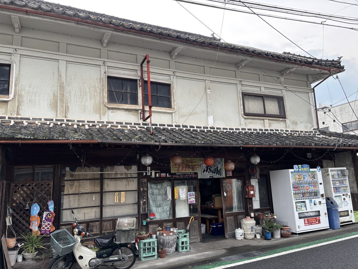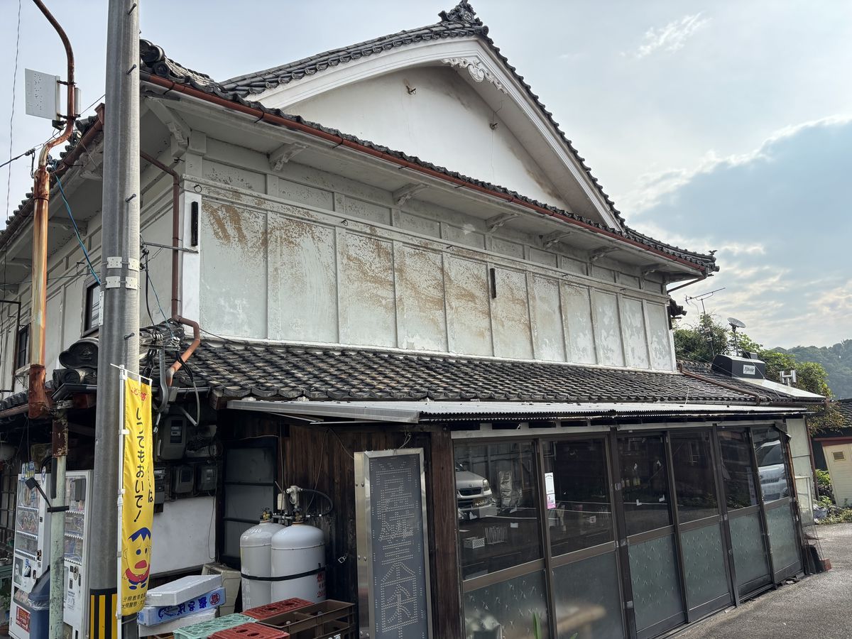 土曜の朝7時前。雨の心配があったが、雲の隙間から陽がさしてきた。このまま天気がもってくれることを願い、「どんこと花火の町」である犬飼の商店街を歩く。平日とは違うであろう土曜日の朝の静かな時間が流れていた。その中で1件の歴史を感じさせる建物に目が止まる。