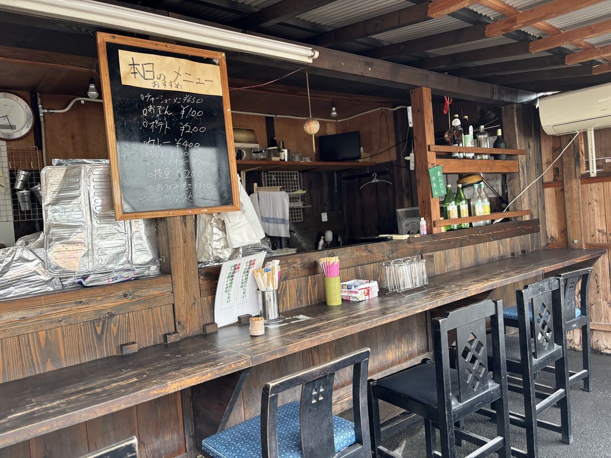 店内で売られている缶ビールやお菓子と共に、おでんやとり天、やきとりなどで盛り上がっているのだろう。隣接スペースはカウンターも併設されていた。