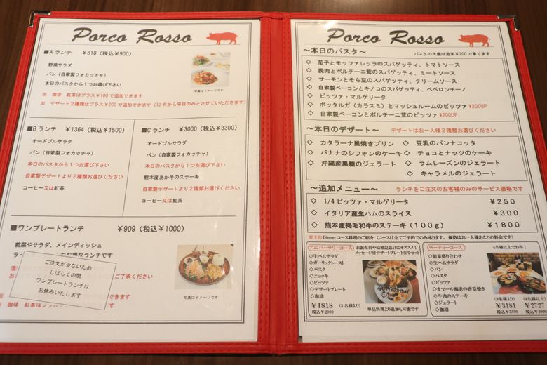 今回紹介した「Bランチ」の他に、「Aランチ」900円と「Cランチ」3300円もあり、「Cランチ」は、「あか牛のステーキ」が付いてきて、さらにボリューム満点なのだとか。さらに、夜は要予約で、「パーティーコース」や「アニバーサリーコース」も提供しているそうなので、「たまの贅沢に、イタリア料理のコースを存分に楽しみたい!」という人は、合わせてチェックしておいてくださいね。