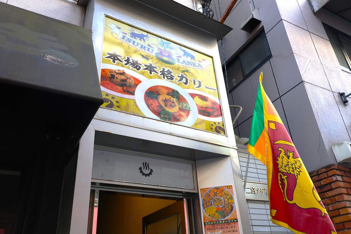 『大分オーパ』の脇にある「縁起横丁」を通ると、スリランカの国旗が目を引きます