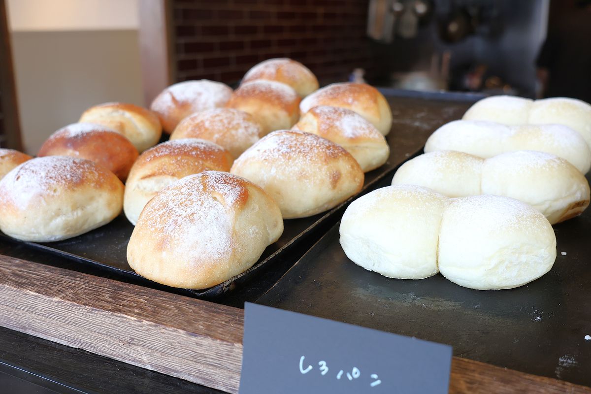 パスタのほかにも、ふわとろ食感のオムライスや、店内で焼き上げるパンもおすすめ。入り口横の棚にはパンがズラリと並び、思わずテイクアウトしたくなります。ランチのあとにおやつや翌朝用のパンを買って帰るのもいいですよね。