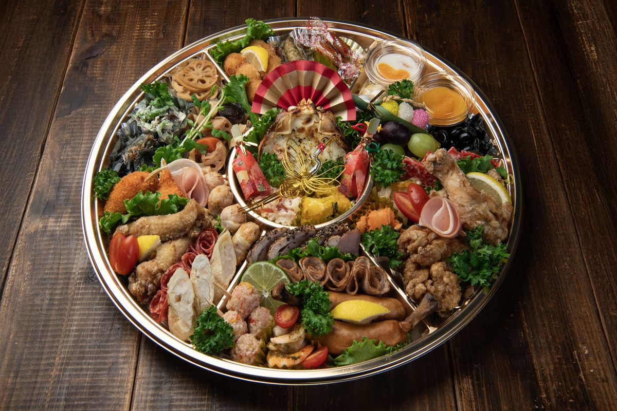 20周年を迎える人気のレストランのオードブルは毎年大好評。直径45cmの器に約30品が並ぶ和洋折衷の料理は、幅広い世代で楽しめ家族や友人の集いにぴったりです。500円分食事券の特典付き。ご予約はお早めに。