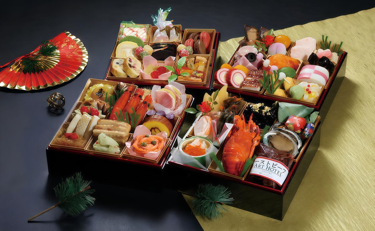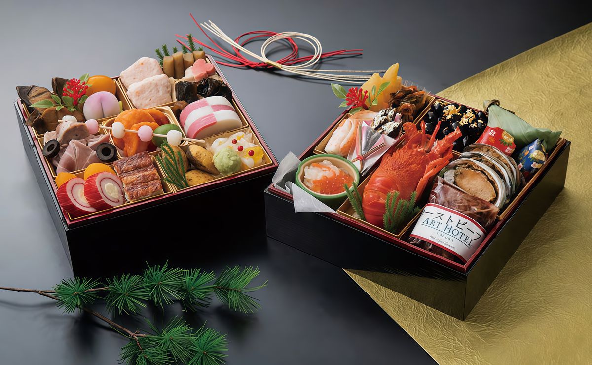 大分市中心部にある『アートホテル大分』のおせちは、和・洋の料理人と、ホテル1階で営業する好評のレストラン『Modern Chinese Restaurant OPERA』のシェフがこだわりのメニューと食材、技巧で作り上げた1年の門出にふさわしい味わいです。おすすめの「招福四段重おせち」は、和食・洋食・中華、それぞれの味が盛り付けられており、ボリュームたっぷりで大人数での集まりごとに重宝します。