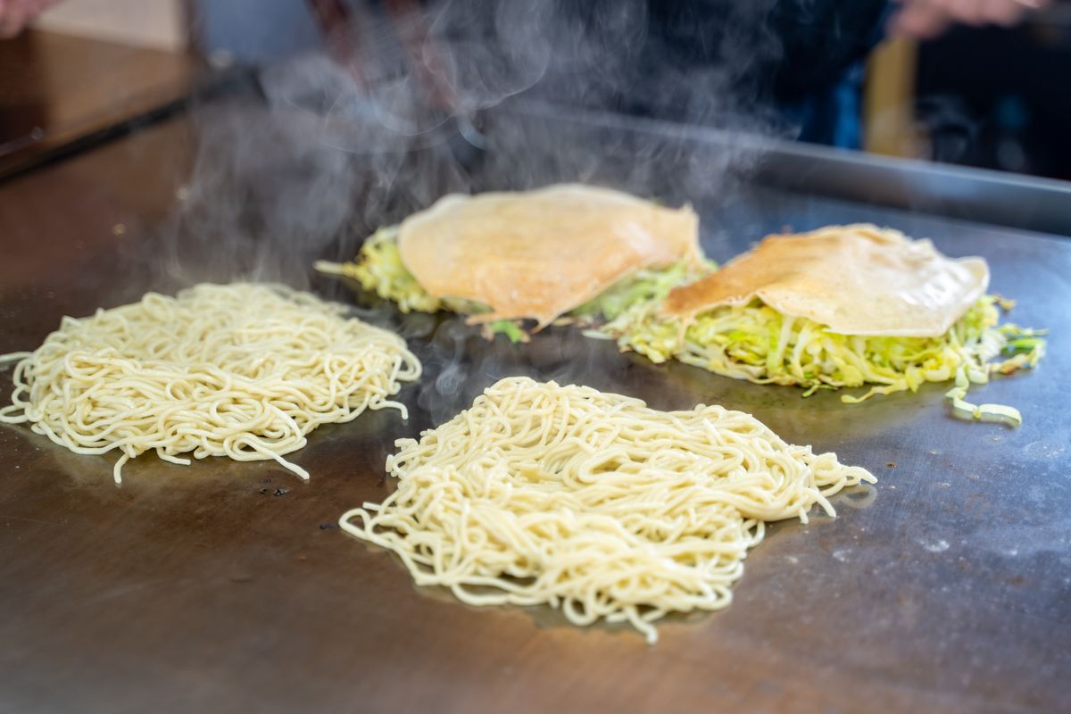 使用する麺は、広島お好み焼き業界で高い支持を集める「磯野製麺」。お好み焼き用の麺一筋の麺というだけあって、程よいコシと食感。オタフクソースとの相性も抜群です。豚肉は県産、ねぎは味一ねぎ、キャベツはしんなりと甘く、たっぷりのボリューム。ひと口目は軽やかで、食べ進めるほどに素材のうまみがじんわりと広がり、最後まで飽きずに食べられます。メニューの中でぜひ味わってほしいのが「おこげ焼き」。大葉の香り、イカ天、ネギのシャキッとした食感が重なり、口の中が一気ににぎやかになります。