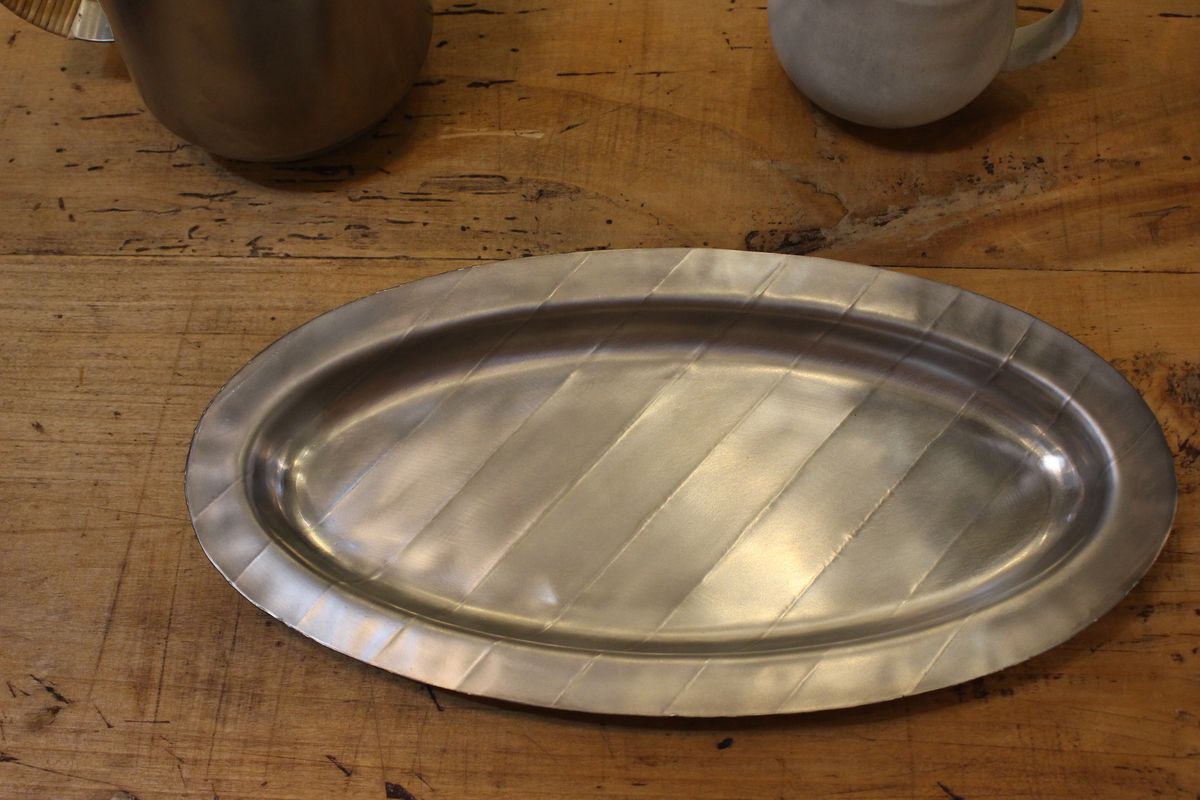 今まで見たことがないようなものだったのでお伺いしたところ、群馬県で制作されている中村智美さんのステンレス皿とのこと。
