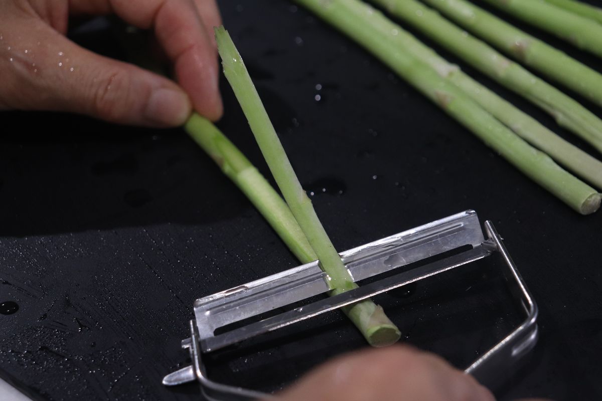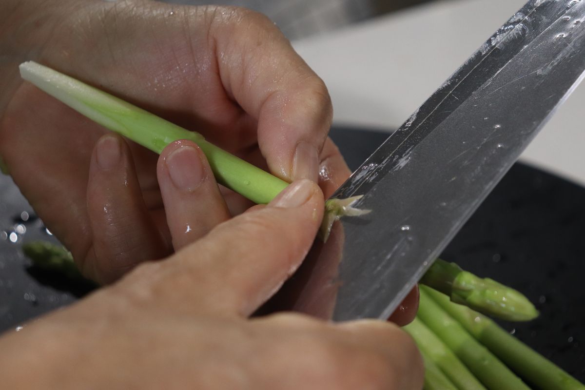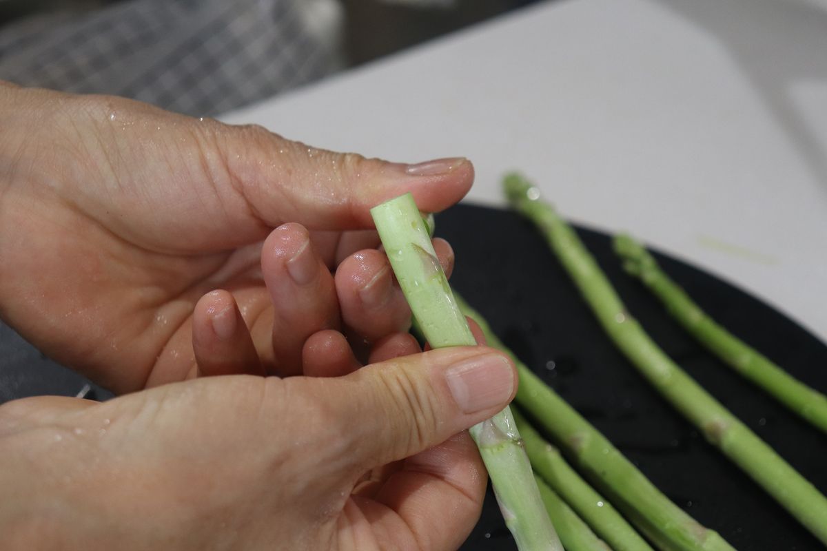 1.アスパラガスは、根本から自然にポキッと折れる固い部分を除く