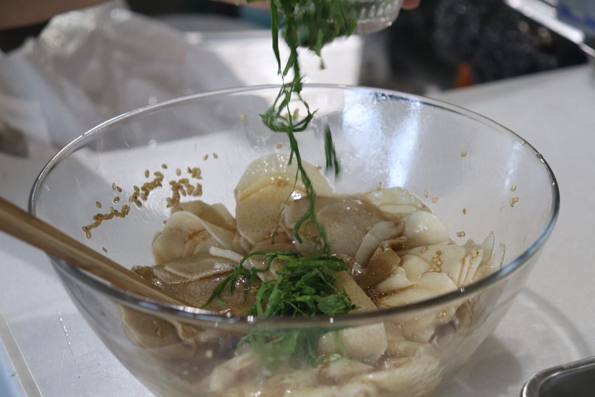 6.3で刻んだしそをボウルに入れ、よくかき混ぜたら完成!