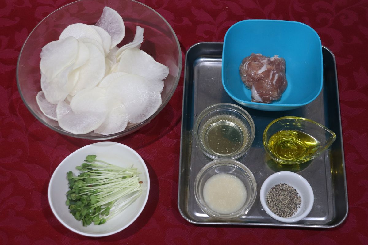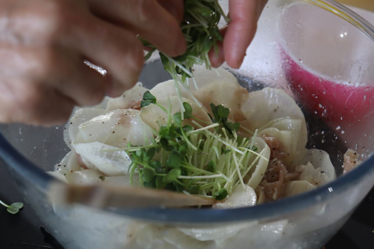 大分/大分教室/料理教室/簡単レシピ/大根/かいわれ/生ハム/塩こうじ/酢/オリーブオイル/サラダ/おつまみ