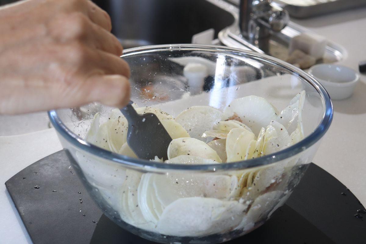 1.大根をスライスする