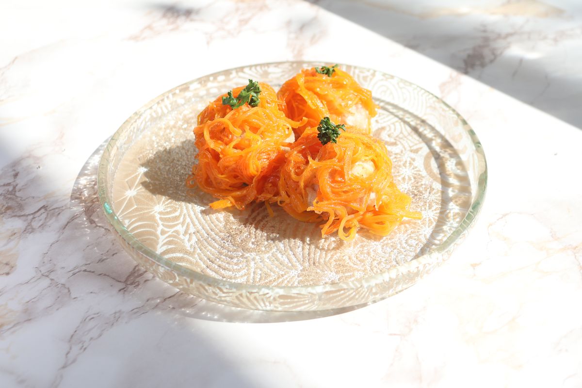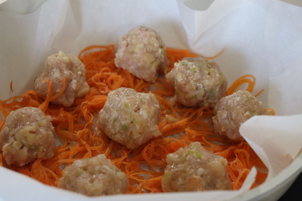 にんじんの甘みがタネに染みた、おしゃれしゅうまいのできあがり!