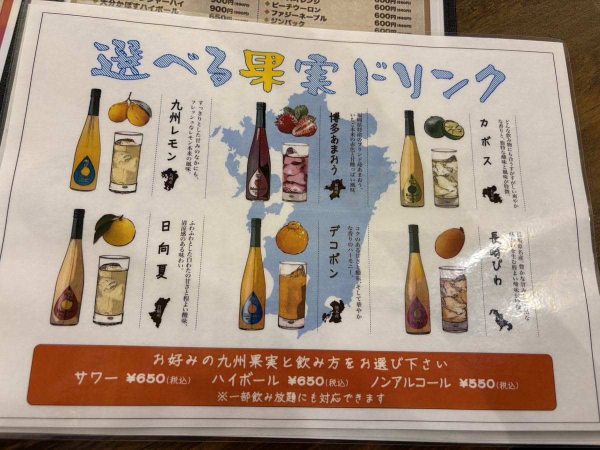 コースは食べ飲み放題プラン(60分3,000円、無制限4,200円)、単品飲み放題プラン(サク飲み王道コース90分/満喫プレミアムコース2,490円)、お席でゆったりプランというフード&ドリンクの単独注文プランの3つがある。