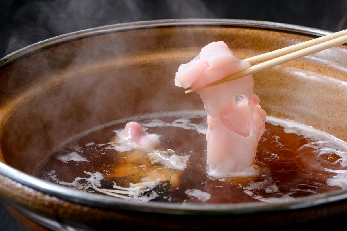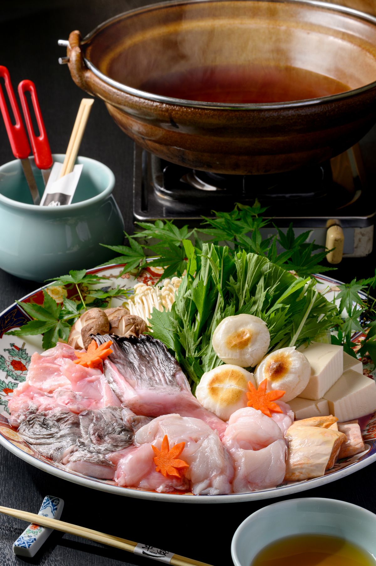 「アンコウ鍋」1人前2800円。ランチタイムは予約が必要、夜は予約なしでも注文できるが、予約した方がスムーズに提供できる。コースもあり