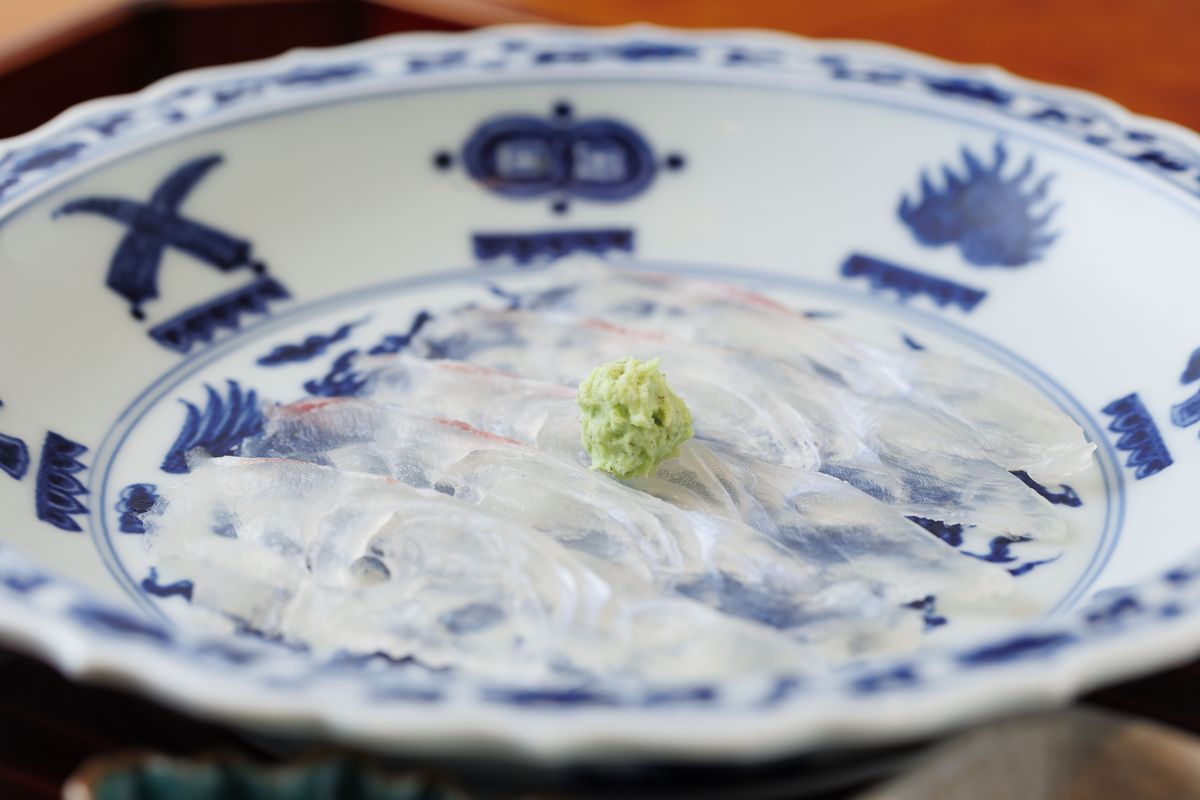長年の経験の中で目利きも鍛えてきた中で、店主・廣門泰三さんが豊かな漁場を持つ大分で挑むのは、地元でしか食べられない魚。「県外からのお客さまも多い当店では、せっかくなら大分でしかいただけないものを提供したい」と、わざわざ佐伯の鶴見市場まで店主自らが買い付けに足を運ぶ。コースで提供される鯛のお造りは、透き通り、その輝きに息をのむほどだ。口に運べば、もちっとしてみずみずしさのある身質、澄みわたるような甘みに胸をつかまれる。