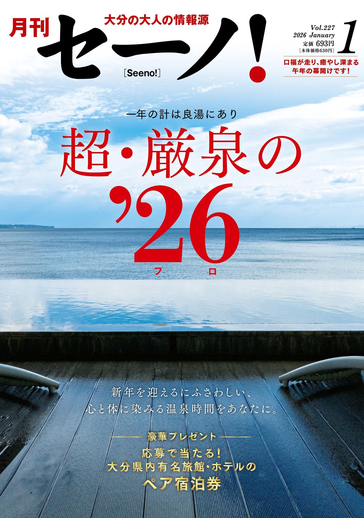 この記事で紹介した内容だけでなく、『月刊セーノ! 1月号』では、新年に訪れたい温泉情報が盛りだくさん! さらに、あの!大分県内の有名旅館・ホテルのペア宿泊券が抽選で当たる豪華読者プレゼントも!