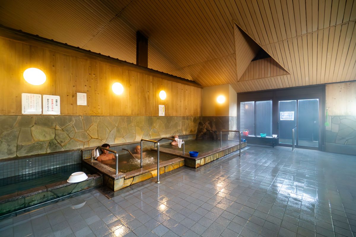 営業直後から地元の人たちを中心に、温泉を楽しみに人たちでにぎわう。