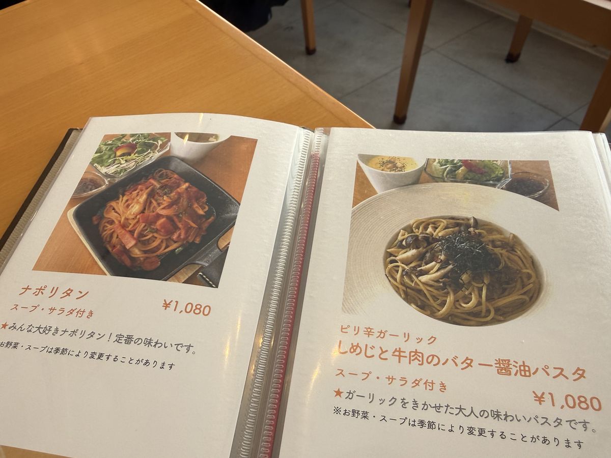 もう一つの対象メニューが「ピリ辛ガーリックしめじ牛肉のバター醤油パスタ」(1080円)。ガーリックの香りとピリッとした辛さがクセになる一皿で、こちらも具だくさん。牛肉の旨みとバター醤油のコクが合わさり、最後まで飽きずに楽しめます。スープとドリンク付きで、満足感も十分。どちらのメニューも「体にやさしい」と「おいしい」を無理なく両立しているのが印象的でした。