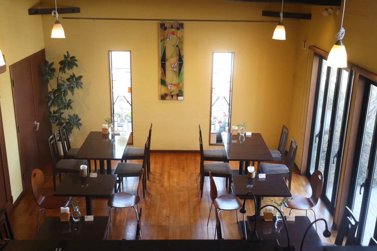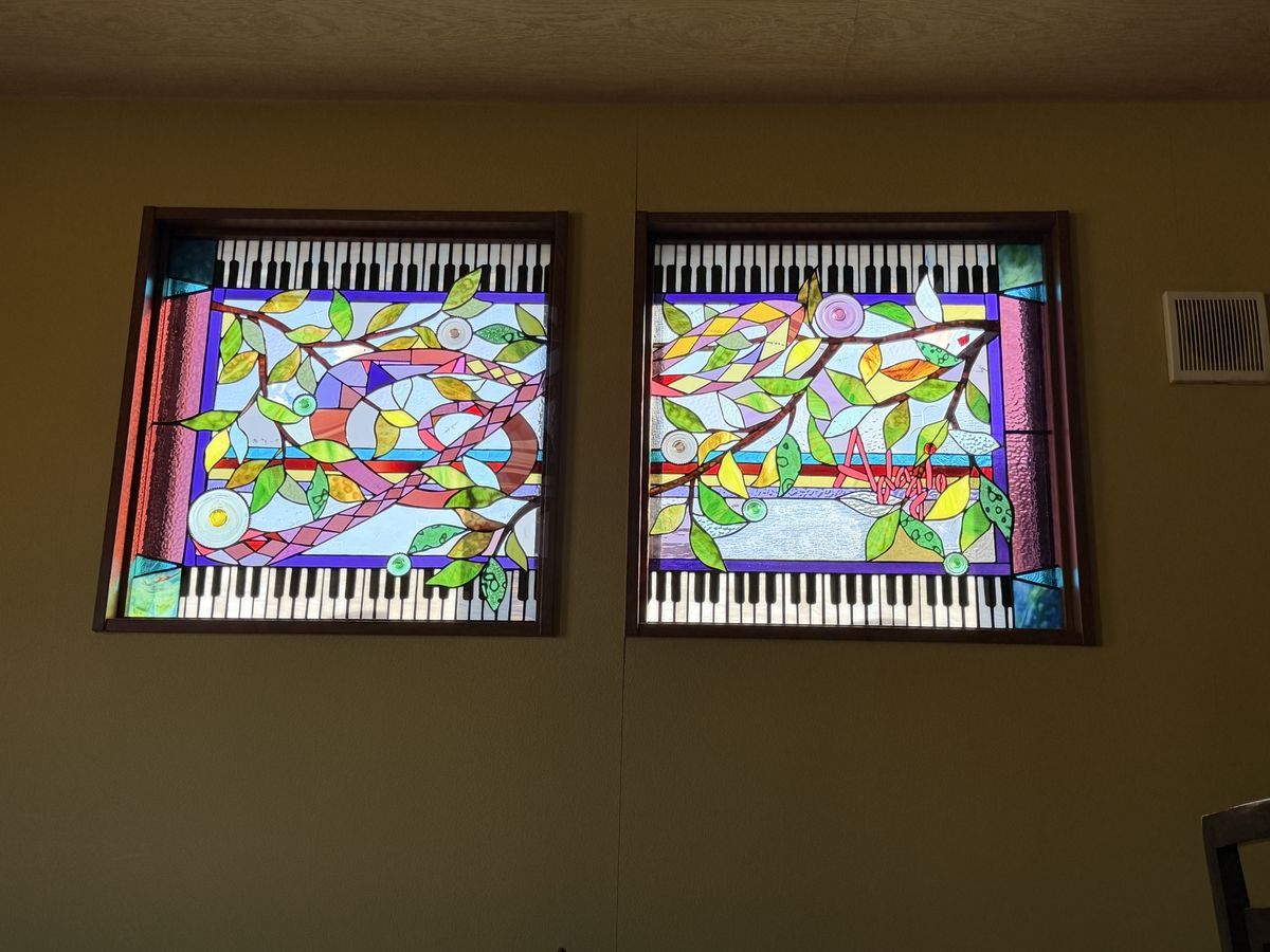 店内にはステンドグラス作家小中理恵子さんの作品が
