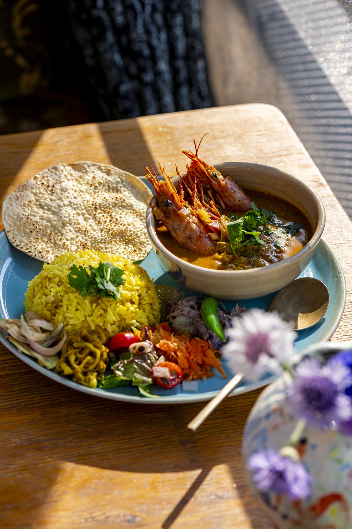 「海老のココナッツカレー」1400円。他のカレーとの2種盛りにする場合は+650円