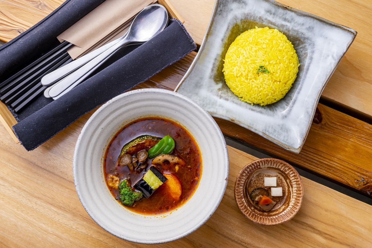 控えめな辛さの「野菜スープカレー(ポーク)」1150円。野菜は季節で変更になります