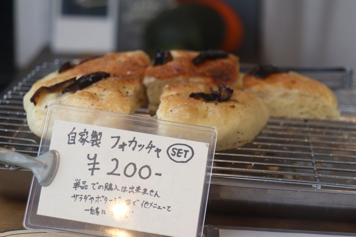 「フォカッチャ」200円、何が並ぶかはその日のお楽しみ!